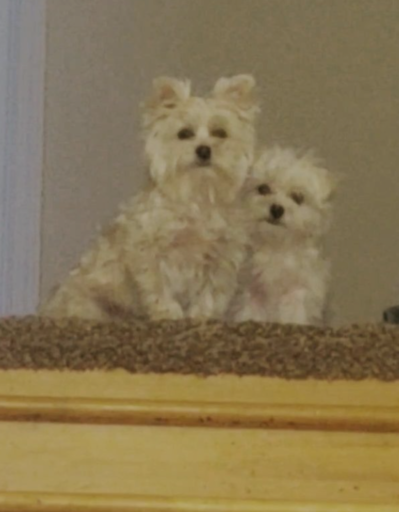 This is Luigi and Leo. They are half-brothers and they are a Maltese-yorkie and Maltese respectively.